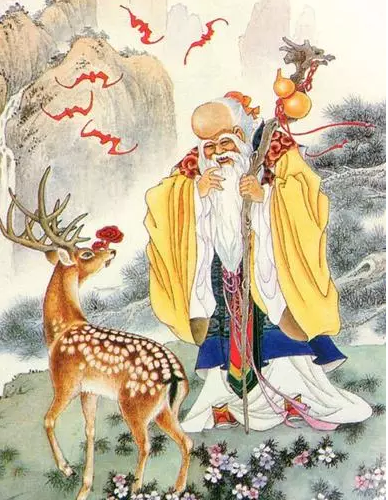 蓬莱三仙:福禄寿三星。福神天官大帝,又一说是西汉杨成,又一说是唐阳城;财神赵公明,一说比干、范蠡为文财神;寿星南极仙翁,女寿星:麻姑
