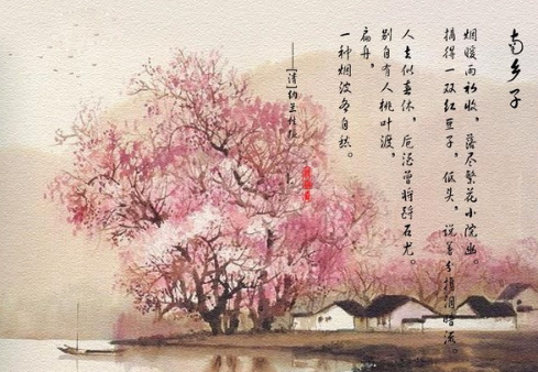 烟暖雨初收,落尽繁花小院幽。摘得一双红豆子,低头,说著分携泪暗流。