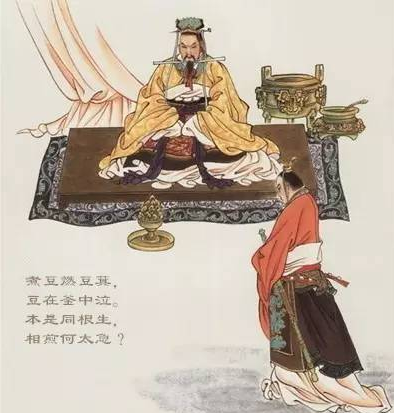 见面后,曹丕限曹植七步之内,吟诗一首,以“兄弟”为题,诗中不许出现“兄弟”二字,但又要表现出“兄弟”关系,如能做到,可免一死,否则决不宽恕。