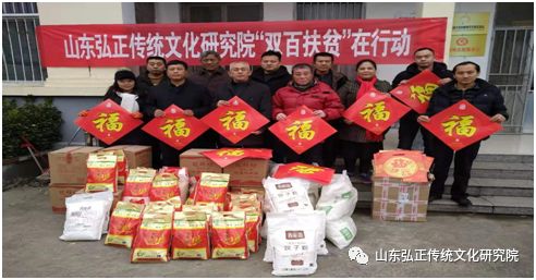 为深入贯彻落实《山东省省管社会组织和社会工作专业力量“双百扶贫行动”实施方案》的有关要求,积极响应省选派办、省扶贫办、省民政厅号召,山东弘正传统文化研究院院长乔松联合山东布衣草堂中医馆陈方伟总经理及研究院会员李自强、季月霞、刘萍一行五人于1月10日前往泰安市东平县东平街道大井村开展“双百扶贫”活动,给36户帮扶家庭和村民送去