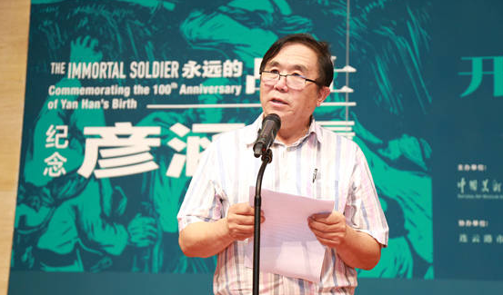 徐里秘书长代表中国美术家协会向彦涵先生的亲属表示深深的敬意和亲切的慰问,同时向展览的成功举办表示最热烈的祝贺。他总结,彦涵先生的一生是忠诚的一生,战斗的一生,是艺术的一生,也是奉献的一生。今天,我们追忆和缅怀他卓越的艺术世界和崇高的人生追求,学习和弘扬他忠诚的爱国精神和高尚的道德品质。希望广大的美术工作者能够牢记艺术使命,将老前辈的这些优良的精神品质传承下去,继续为推进中国美术事业的发展繁荣而努力奋斗、贡献力量。