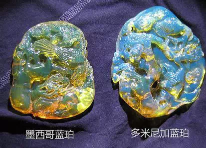 而墨西哥料则也被称为蓝绿珀,在自然光下基本是绿色。
