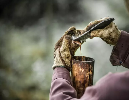 天然大漆是世界公认的“涂料之王”。大漆深沉、含蓄、浑厚、优雅,因此也难得。一棵漆树整个生命周期只能割出 10公斤生漆,3000颗漆树采集一公斤生漆,并有着严格的割漆制度和方法,稍有不慎就会导致漆树死亡,故有“百里千刀一斤漆”的说法。漆农通常半夜进山,几秒钟就要换一次蚌壳,因此现在市面上的大漆价格极为昂贵。