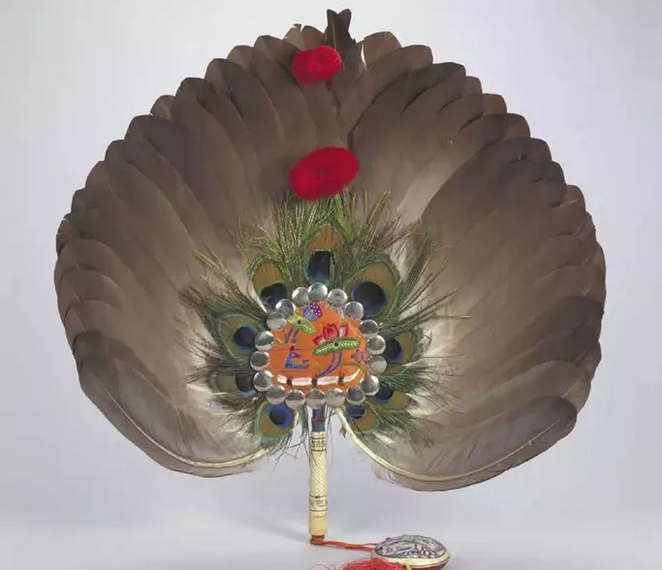 晋人的《古今注》中记载:“舜广开视听,求贤人自辅,作五明?。”明人也有“舜始造扇”的记载,说明舜帝时就已经有扇子了。在商周时代,人们用雄雉鸡绚丽斑斓的长尾制成了“翟扇”,并出现了长柄的“雉扇”。扇此时成了帝王威仪的象征。雉毛扇到唐朝改成了孔雀毛。据考古发现,四川成都出土的战国铜壶刻有一个仆人手执长柄扇替主人扇风的图案,这是目前发现较早的扇子形象。汉末到魏晋南北朝出现了用动物尾毛做成的拂尘,谓之“毛扇”。而另一种以禽类羽毛制成的羽毛扇,质地洁白,毛绒柔软,轻飘舒适。江南地区以白鹅羽毛制成的羽扇最为著名,多作为贡品进贡朝廷。