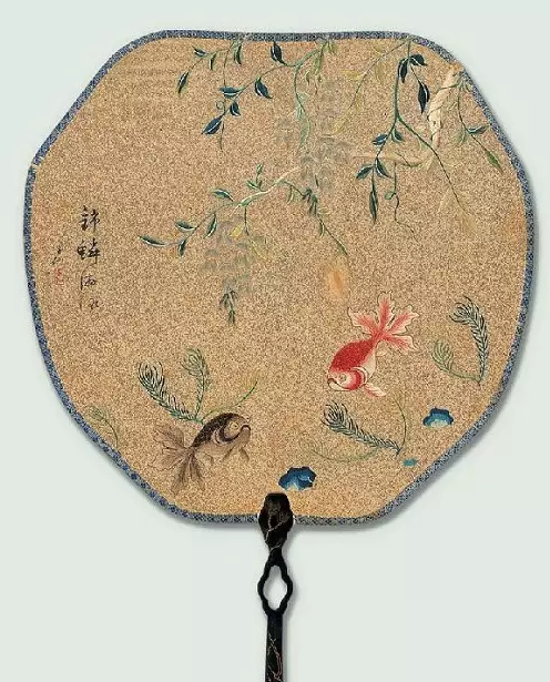 苏绣金鱼图团扇