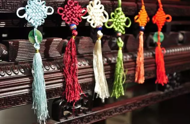 中国结不仅造型优美、色彩多样,这些词如“吉庆有余”“福寿双全”“双喜临门”“吉祥如意”“一路顺风”与中国结组配,都表示热烈浓郁的美好祝福,是赞颂以及传达衷心至诚的祈求和心愿的佳作。