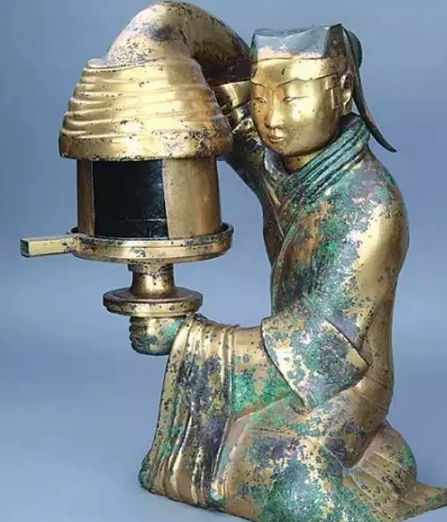 27.书灯,类似今天的台灯。(这个灯的主体其实是可以盛水的,灯烟会顺着上方铜人的袖子进入到主体部分,溶于水,这样就是无烟灯的,设计得非常环保!)