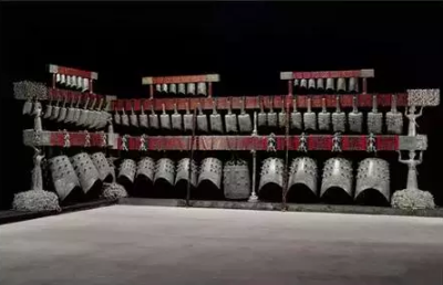 36.钟,古代乐器。一系列铜制的钟挂在木架上,可以用小木槌击奏。(启明按:图片展示的是一套编钟,编钟在古代是上层社会专用的乐器,是等级和权力的象征,所以这放在文房雅器里似乎不太合适。)