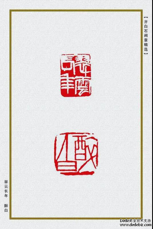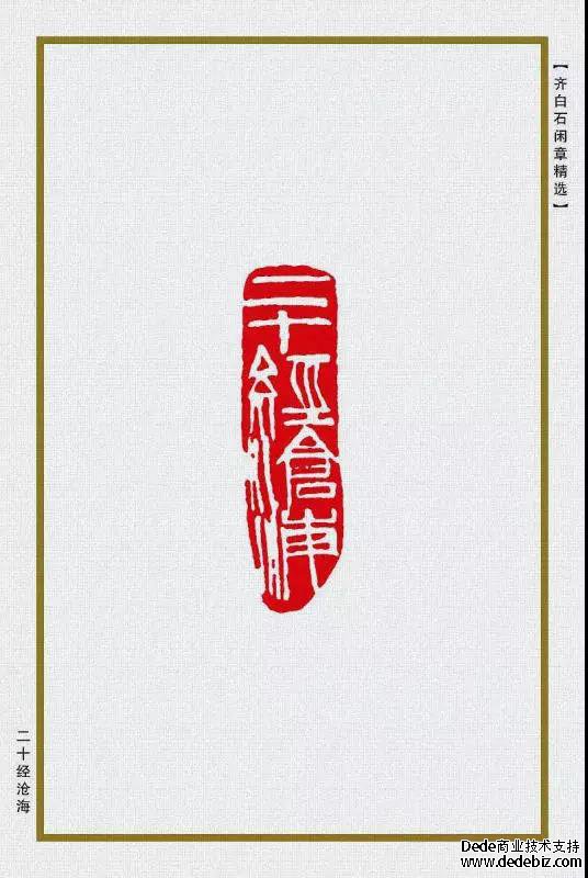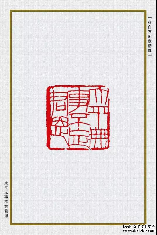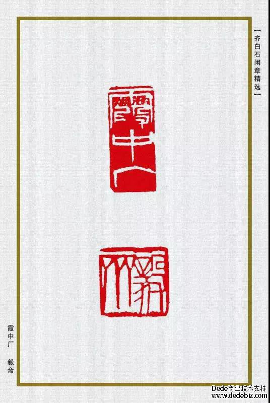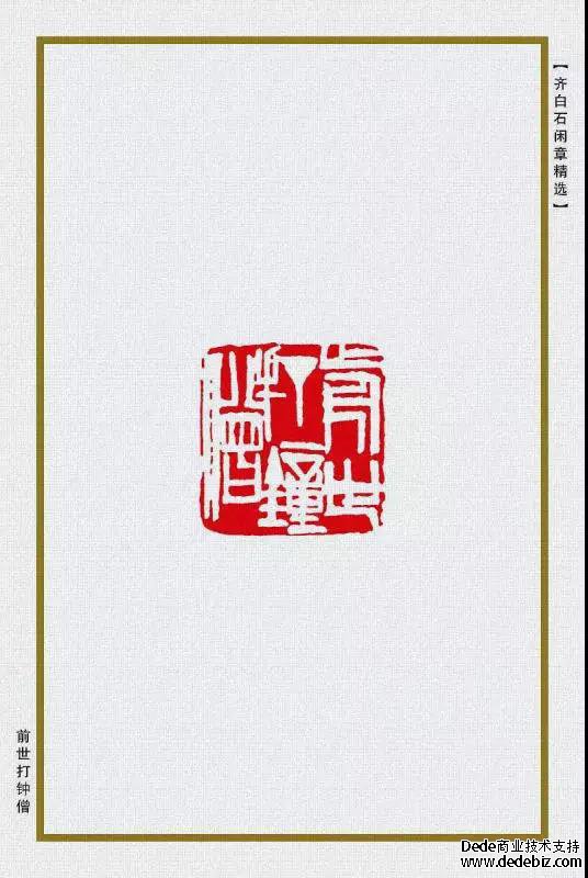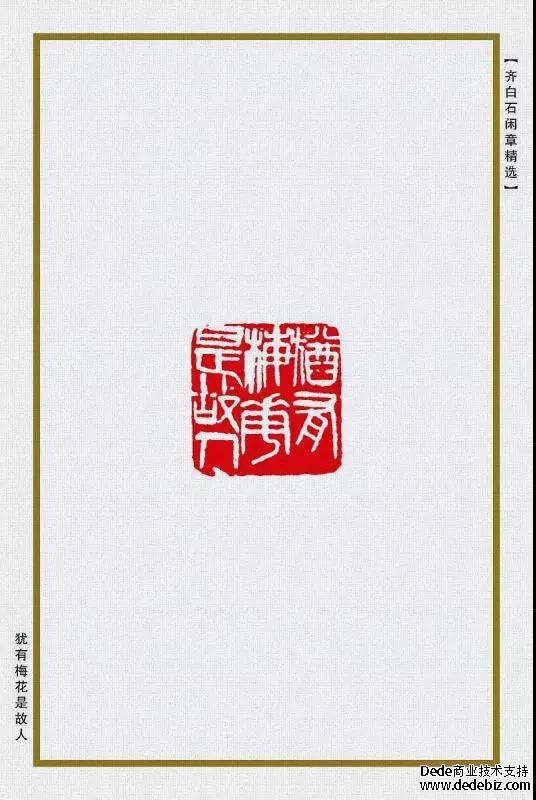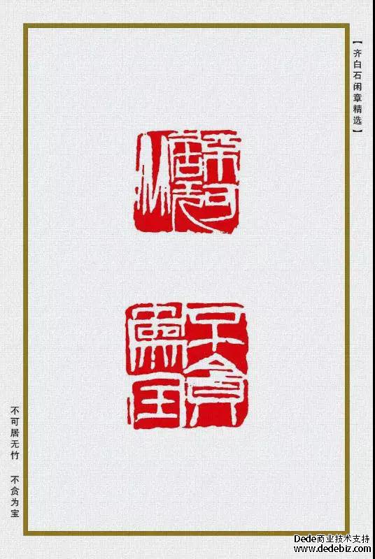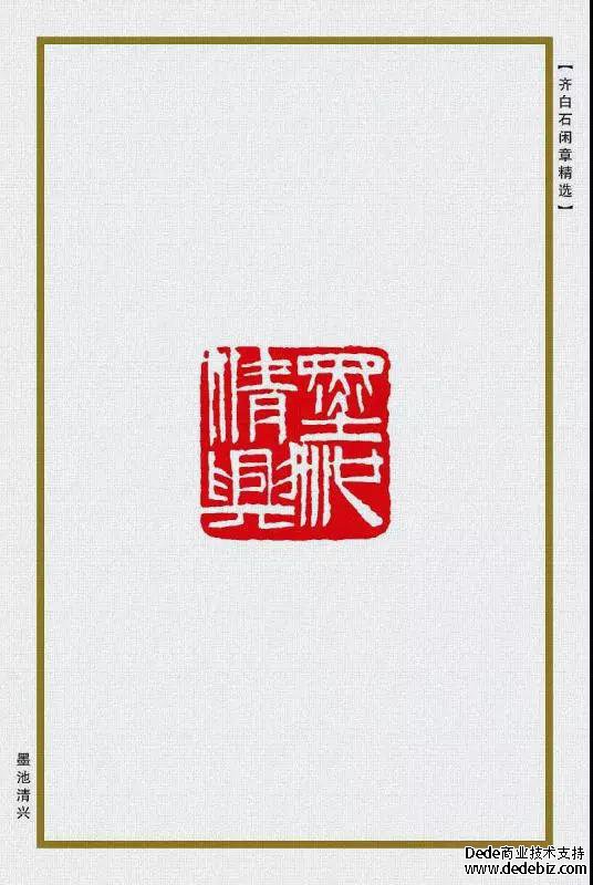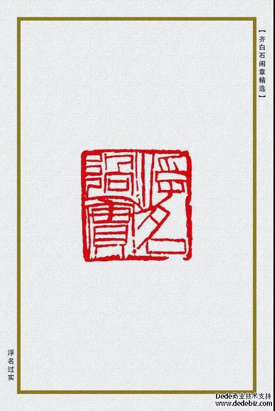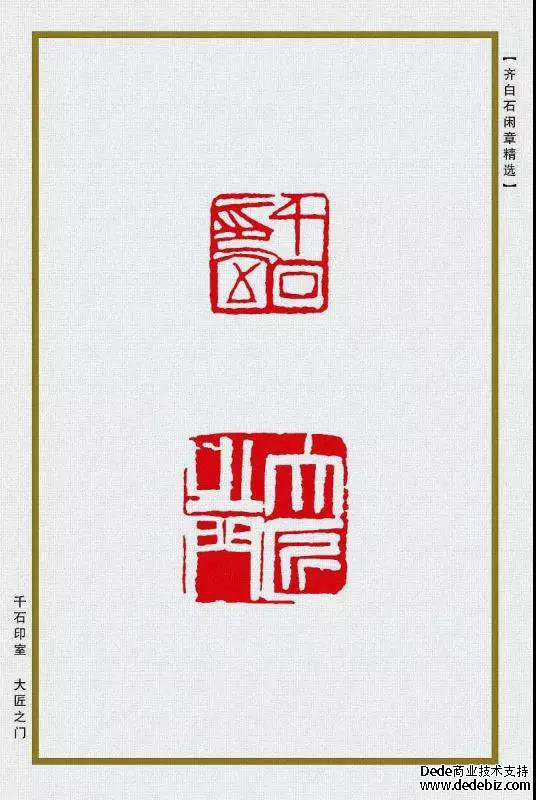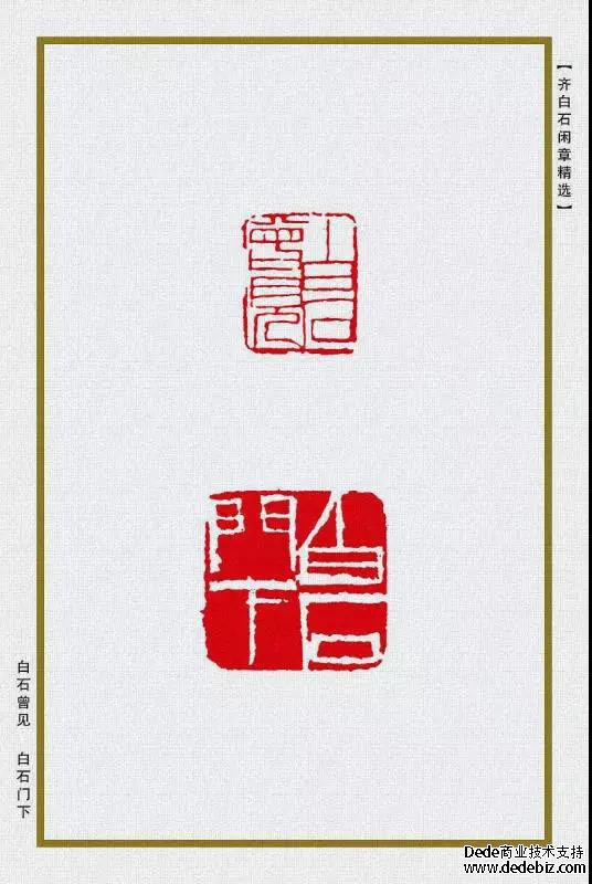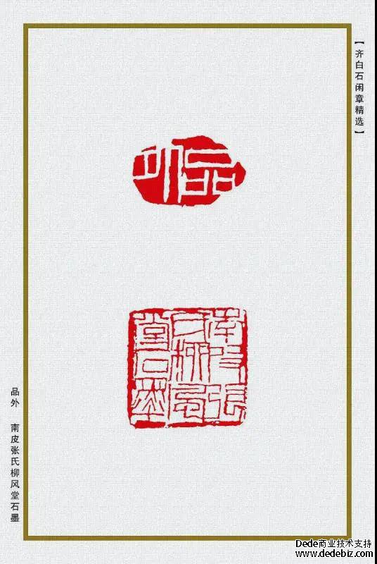 白石老人将汉印中平正方实,转折圆而结体方的构图特点加以变化,使一字之内,外形方正,而笔意疏密参差变化生动,穿插自然而恣肆纵横,使章法在强烈的对比中得到统一。他还将篆书上密下疏的特点移人印章,大胆变革而不失法度。齐白石治印,强调不削不作,绝摹仿,恶整理,主张率真自然。