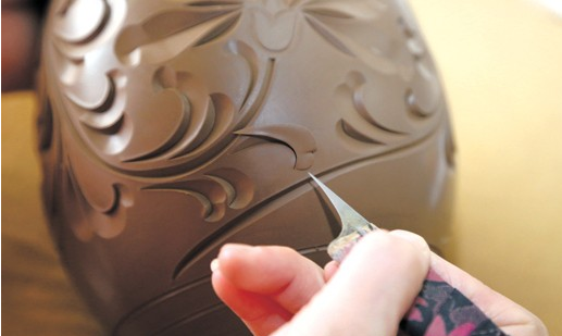 可塑法有选料、球磨、压滤、真空炼泥、陈腐、拉坯、干燥、修坯、压光、刻制、磨光、干燥、烧制等17道工序,它主要用于瓶、器等型状变化大和比较不规则的制品生产。先将精制的可塑泥块放到成型机上拉坯成型,当干燥到一定程度时,再将坯体放到成型机上修坯、压光,坯体含水为8—12%时,进行刻制,随后磨光,待含水率再降至一定程度,即可装窑烧制。