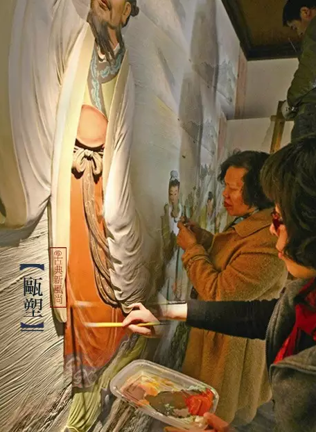 将绘画、浮雕和泥塑融为一体,