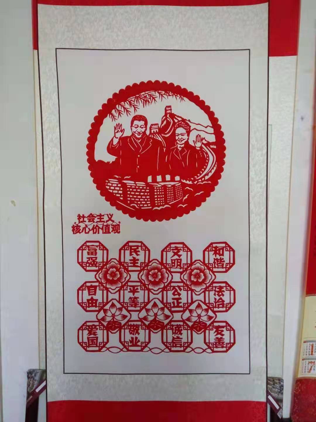 2016年为建党95周年创作作品40余幅,赠送给办事处及社区、村民居委会等单位,并在庆祝会上展示大幅团花《心向共产党》。四年来,还为办事处、社区80岁以上老人赠送福寿等作品百余幅。