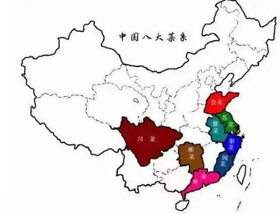 中国地域广阔,由于各地的气候、地理、历史、物产及风俗不同,经过漫长的历史演变,形成了各不相同的一整套自成体系的烹饪技艺和风味,这些地方菜肴被全国认可后便成了菜系。最初只有四大菜系:鲁菜、苏菜、粤菜、川菜,到了后来才最终形成八大菜系:鲁菜、苏菜、粤菜、川菜,浙菜、闽菜、湘菜、徽菜。