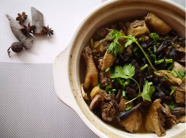 宋高宗曾问歙味于学士汪藻,汪藻举梅圣俞诗对答“雪天牛尾狸,沙地马蹄鳖”。牛尾狸即果子狸,又名白额。徽菜系在烹调技艺上擅长烧、炖、蒸,而爆、炒菜较少,重油、重色、重火工。
