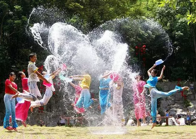 泰国传统的新年,即“宋干节”(“宋干”是梵语的译音),也叫“泼水节”,是公历的每年4月13日到16日。节日里,人们抬着或用车载着巨大的佛像出游,佛像后面跟着一辆辆花车,车上站着化了妆的“宋干女神”,成群结队的男女青年,身着色彩鲜艳的民族服装,敲着长鼓,载歌载舞。在游行队伍经过的道路两旁,善男信女夹道而行,用银钵里盛着用贝叶浸泡过的,渗有香料的水,泼洒到佛像和“宋干女神”身上,祈求新年如意,风调雨顺,然后人们相互洒水,喜笑颜开的祝长辈健康长寿,祝亲朋新年幸运、未婚的青年男女,则用泼水来表示彼此之间的爱慕之情。泰国人在新年第一天都在窗台、门口端放一盆清水,家家户户都要到郊外江河中去进行新年沐浴。为庆贺新年,泰国人举行在规模的“赛象大会”,内容有:人象拔河、跳象拾物、象跨人身、大象足球赛、古代象阵表演等。很是精彩动人。