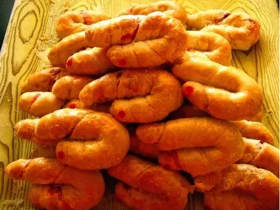 馓子是一种油炸食品,香脆美味,山东境内尤以鲁西南最受欢迎。馓子色泽黄亮,层叠陈列,轻巧美观,干吃香脆可口,泡过牛奶后入口即化。好客君记得儿时,吃馓子习惯一根根的数着吃,好有意思!