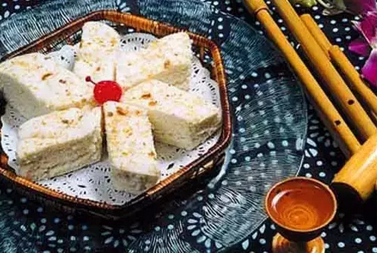“丰糕、丰糕,以表丰收之兆。”沂水丰糕为沂水独有,是临沂沂水县著名汉族传统糕类名吃。它实际是满族传统食品沙琪玛的改良品种,丰糕寓意年年丰收,步步登高,沂水人每到中秋来临,制成丰糕以庆丰年。