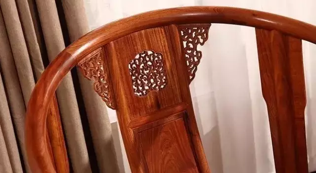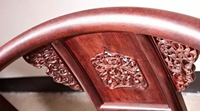 第一招:攒板必须平镶。市面上的皇宫椅一般会选择在靠背上镶一块抢眼的木料,增加整个椅子的尊贵感。在挑选这类皇宫椅时应注意,一定要选择木料采用平镶做法的椅子,因为不用平镶的靠背,人在靠坐是必定是不舒服的。这个道理看上去简单,但是很多厂家为了省工,确实会忽略这个问题。