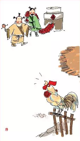 金鸡报晓。晚辈给长辈拜年,长辈给压岁钱,压住邪祟。