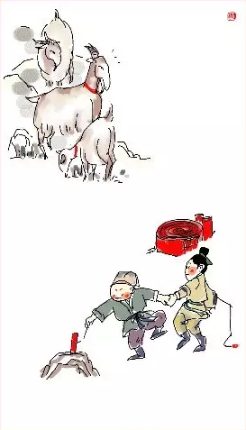,三羊开泰。灶王爷要查户口,恭迎灶神回民间。