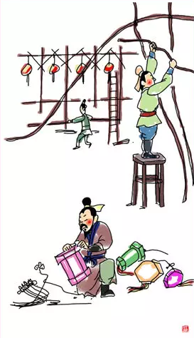 ,搭建灯棚。元宵节将近,开始做元宵赏灯的准备工作。