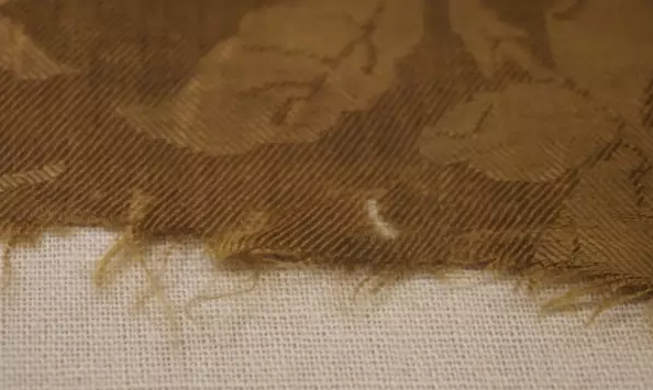 以斜纹组织为基本特征的丝织品,可分为素绫和纹绫。纹绫相比素绫则是多了单层暗花的织物。绫质地较为轻薄,光泽柔滑,历史可以追溯到殷商时期,唐宋时已用作官服的主要面料,当时称之为“绮”。有文献曰:绮,欹也。其文欹斜,不顺经纬之纵横也——记住了,好一句霸气的“不顺经纬之纵横也”!所以是斜的!斜的!
