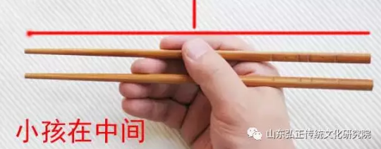一般来说,小孩用筷子时,握取部位在筷子中部。成年后可向筷尾移动,握取部位在离筷尾四分之一处。