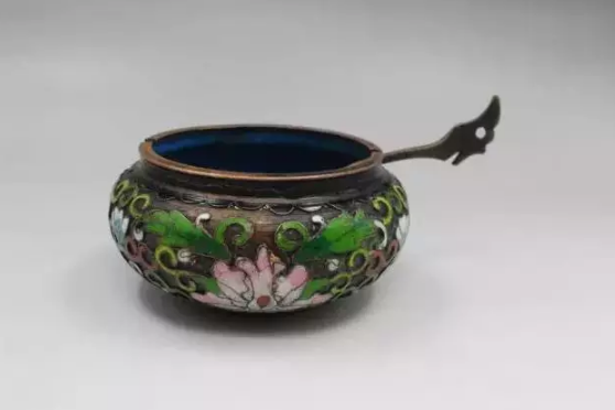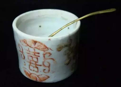 17.蜡斗,古时文人用蜡之处很多,缄封必用蜡,而不用糊。糊斗和蜡斗作用相同。图为五彩双喜花卉,图无盖,应有盖。